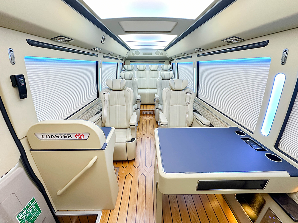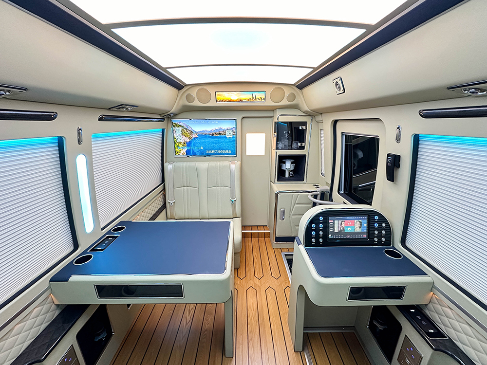 娛樂模式:32寸高清影屏、車載冰箱、燒水壺、紅酒柜
